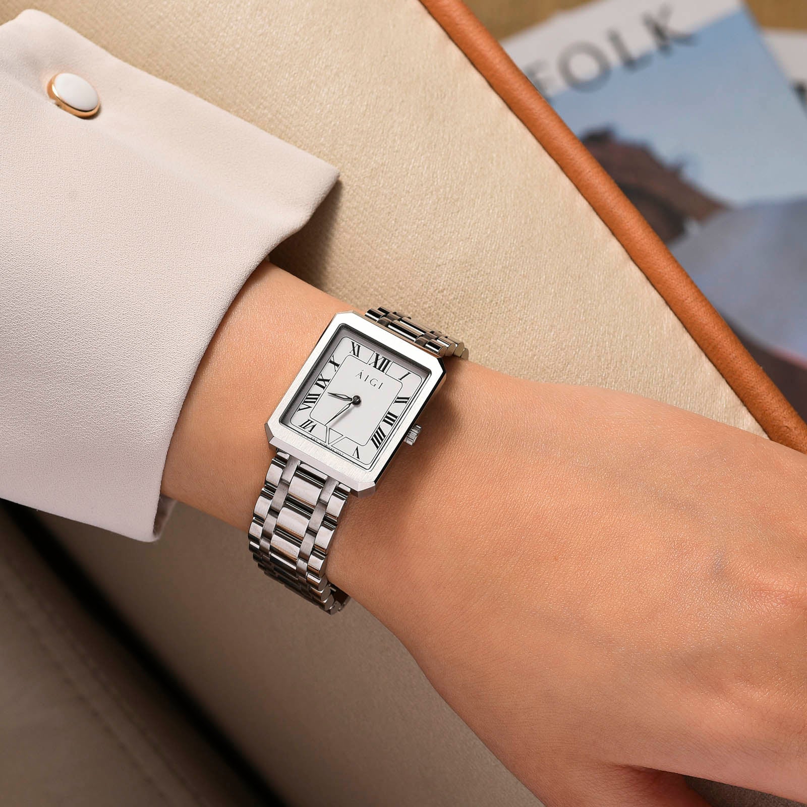 Gjennom et harmonisk samspill av polerte, vertikalt- og horisontalt børstede områder, har vi skapt en dameklokke med et fengslende og eksklusivt utseende som utvilsomt vil tiltrekke seg oppmerksomhet.