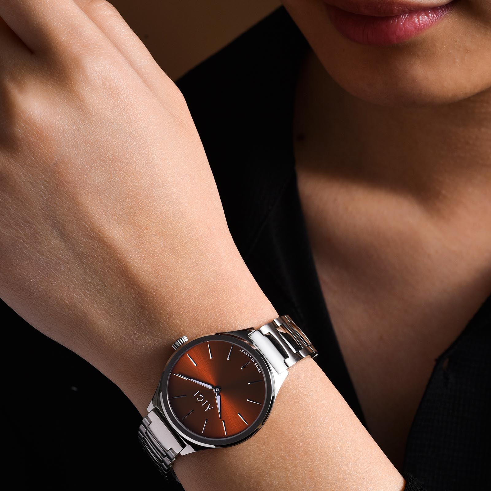 Hver ÁIGI-klokke gir deg muligheten til å tilpasse med flere reimer, har ripesikkert safirglass, kasser av kirurgisk rustfritt stål og en vanntetthet på minst 5ATM.