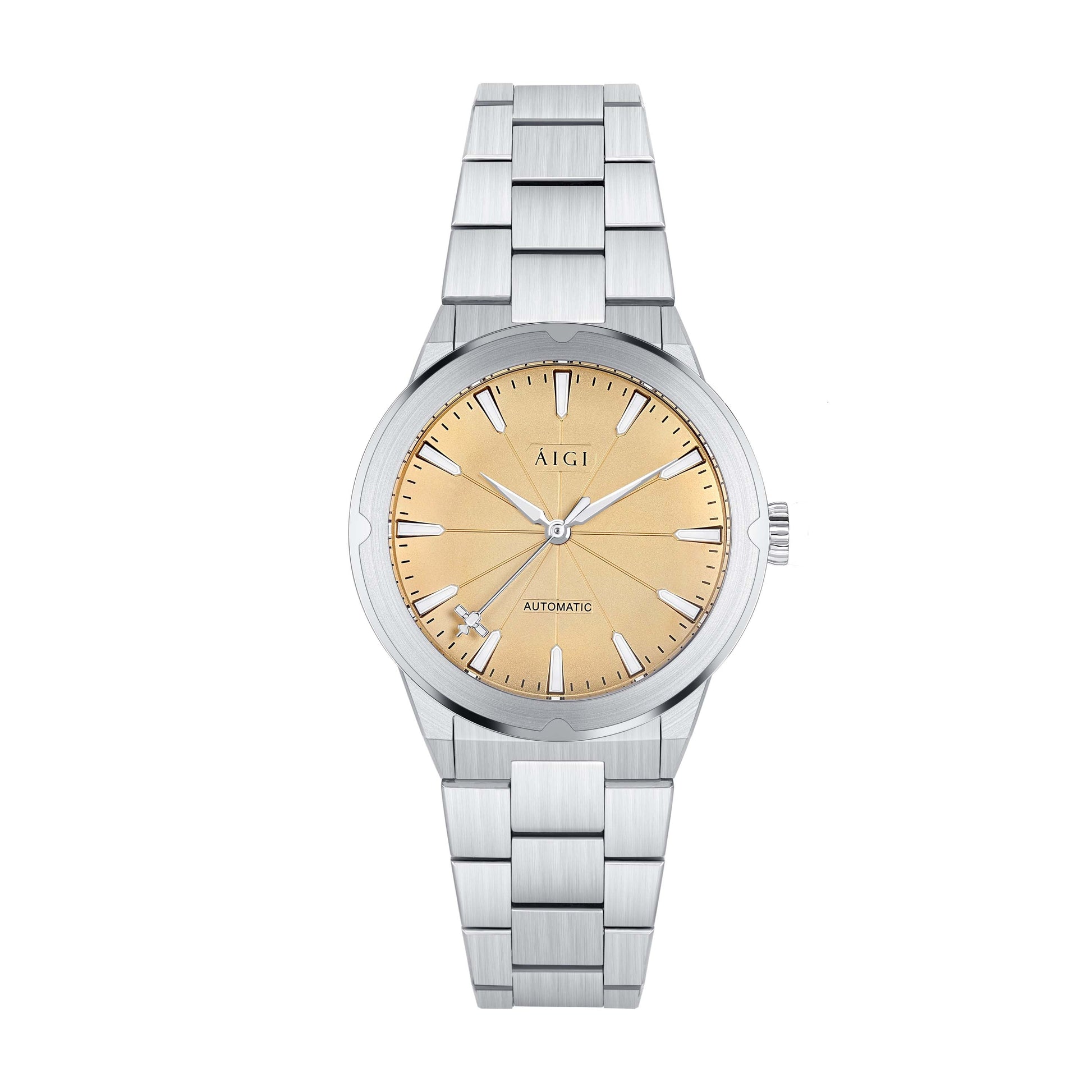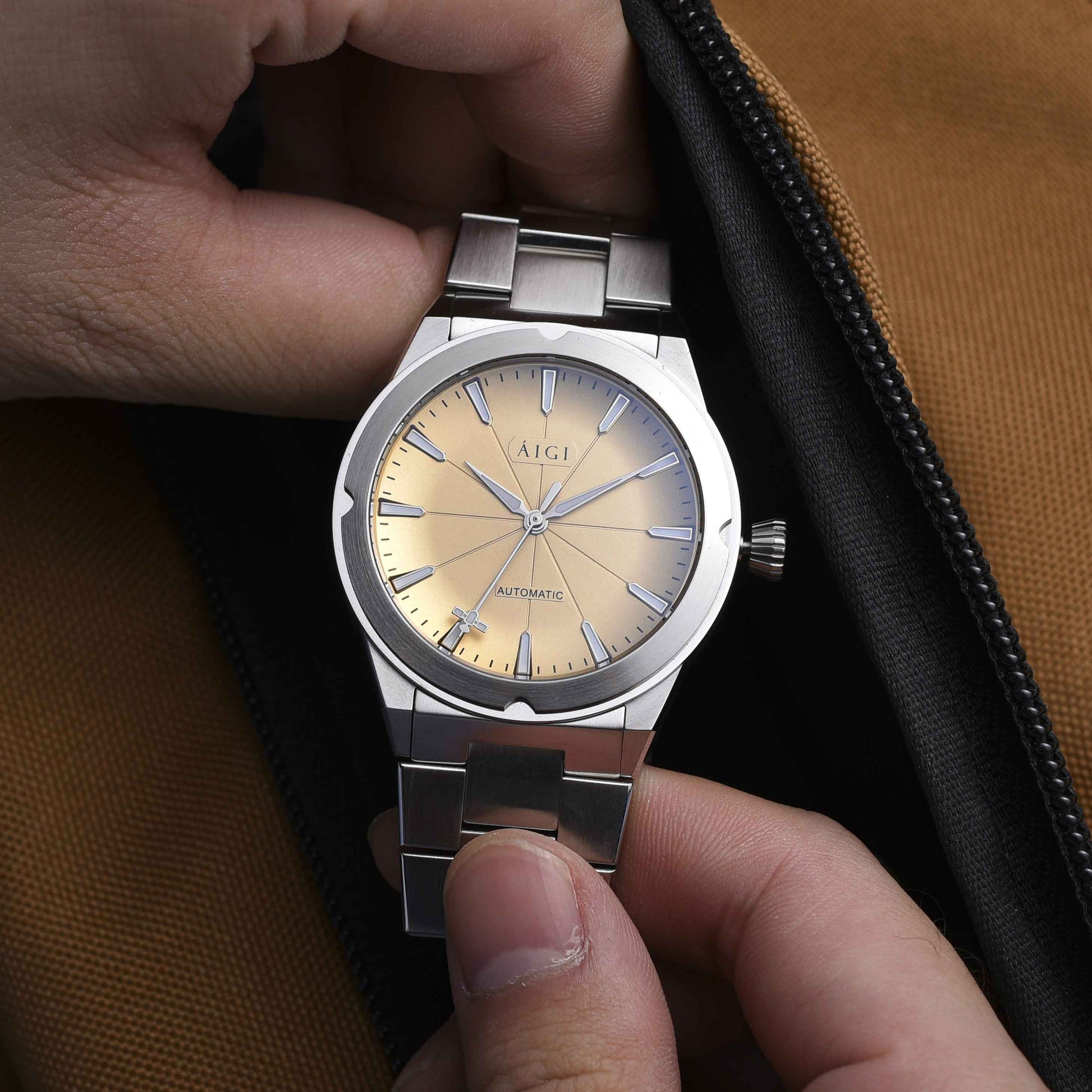 Med et hurtigutløsningssystem for reimen og verktøyfri mikroadjustering av lengden på lenken, tilpasser klokken seg lett til enhver anledning.