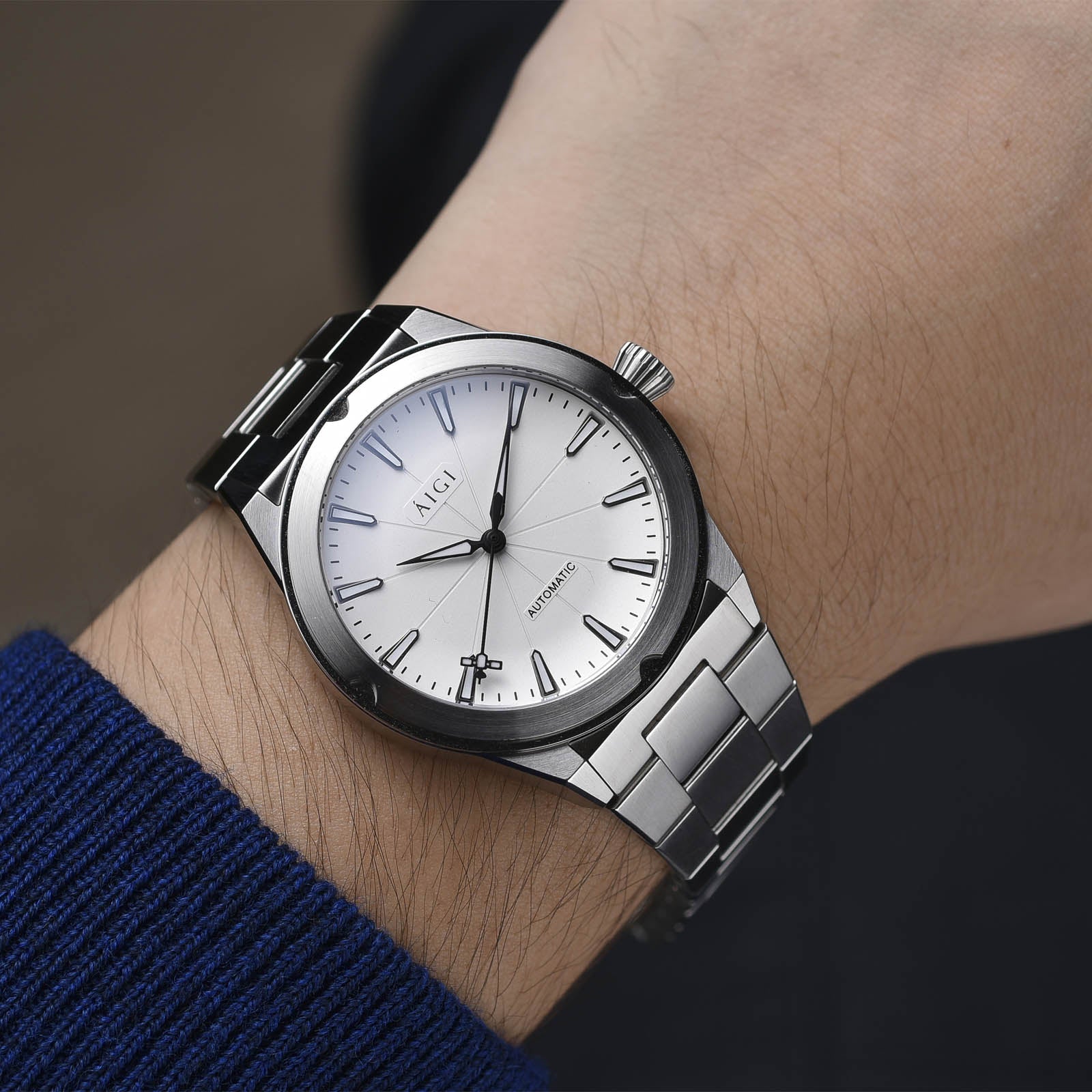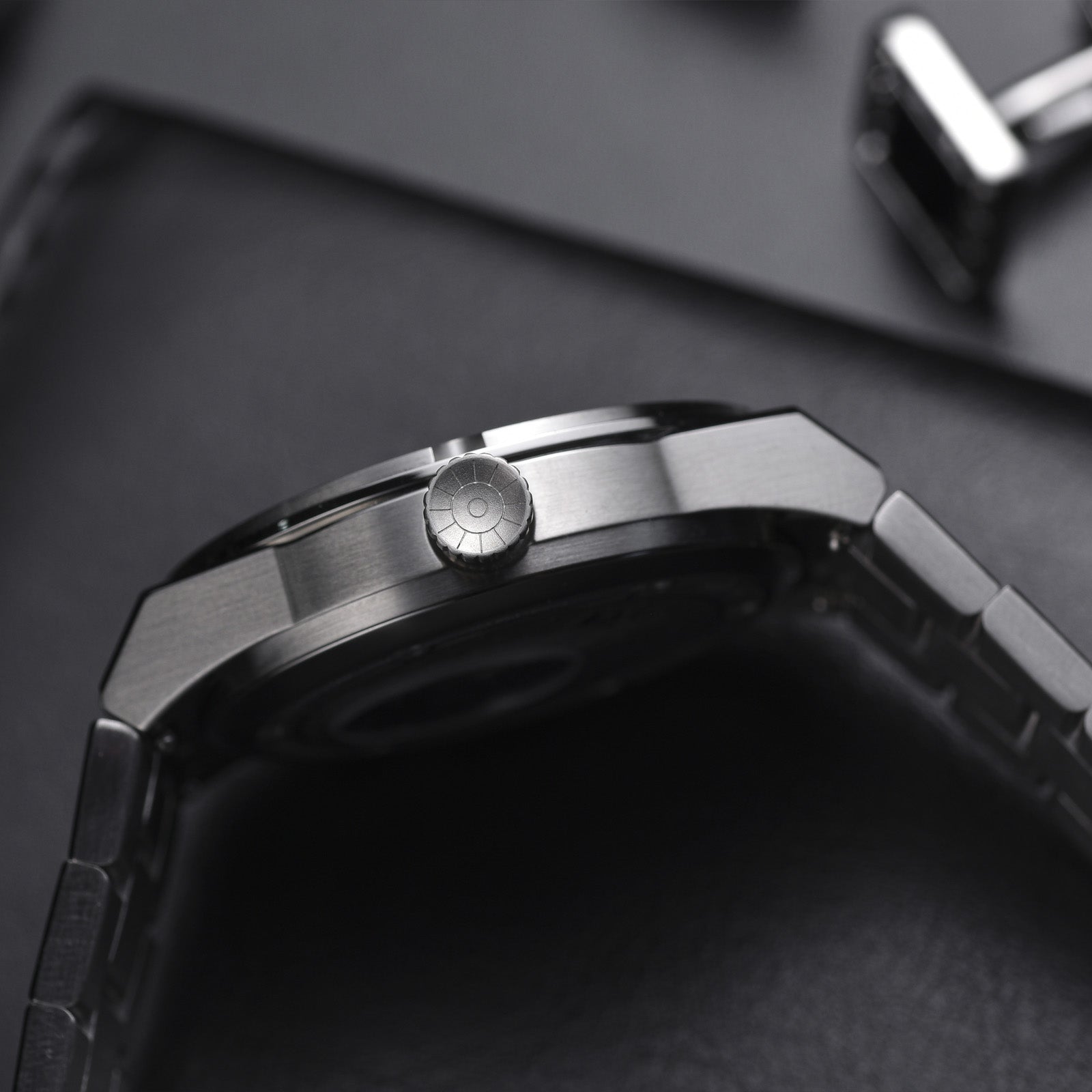 Med et hurtigutløsningssystem for reimen og verktøyfri mikroadjustering av lengden på lenken, tilpasser klokken seg lett til enhver anledning.